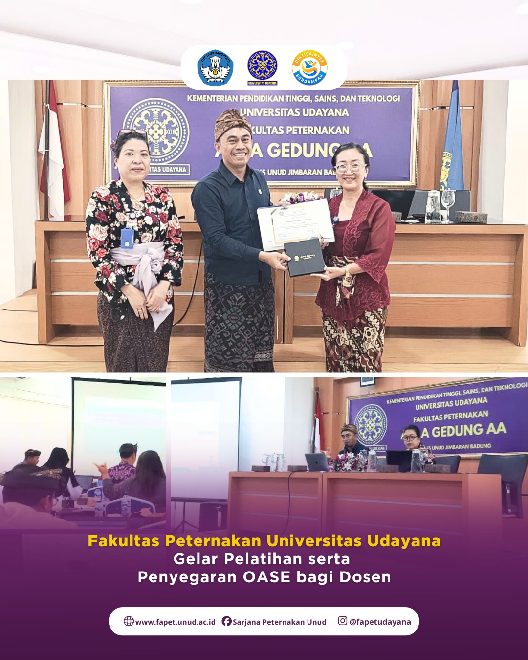 The Faculty of Animal Science at Udayana University held an OASE (Online Academic Service for E-learning) Training and Refresher Course on February 12, 2026, at the AA Building, 3rd Floor, Fapet UN Read More...