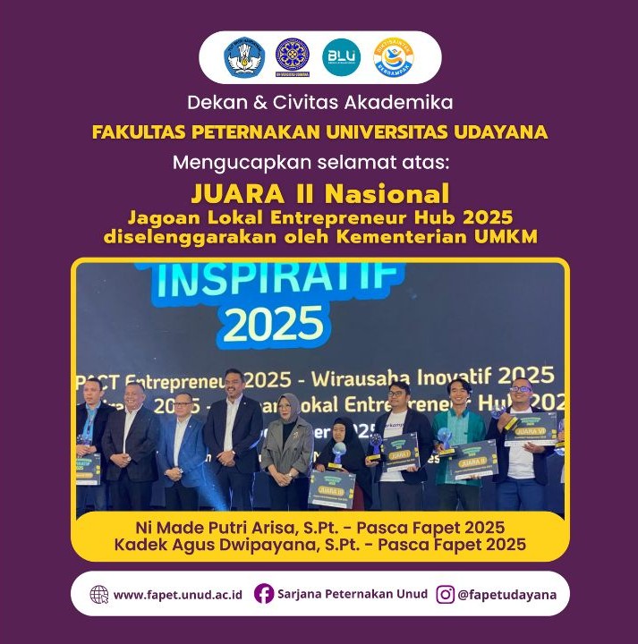 Selamat dan Sukses! Fakultas Peternakan Universitas Udayana mengucapkan apresiasi setinggi-tingginya kepada: Read More...