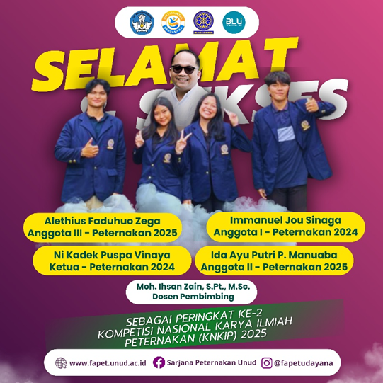 Ucapan Selamat atas Prestasi Juara 2 Kompetisi Nasional Karya Ilmiah Peternakan (KNKIP) 2025