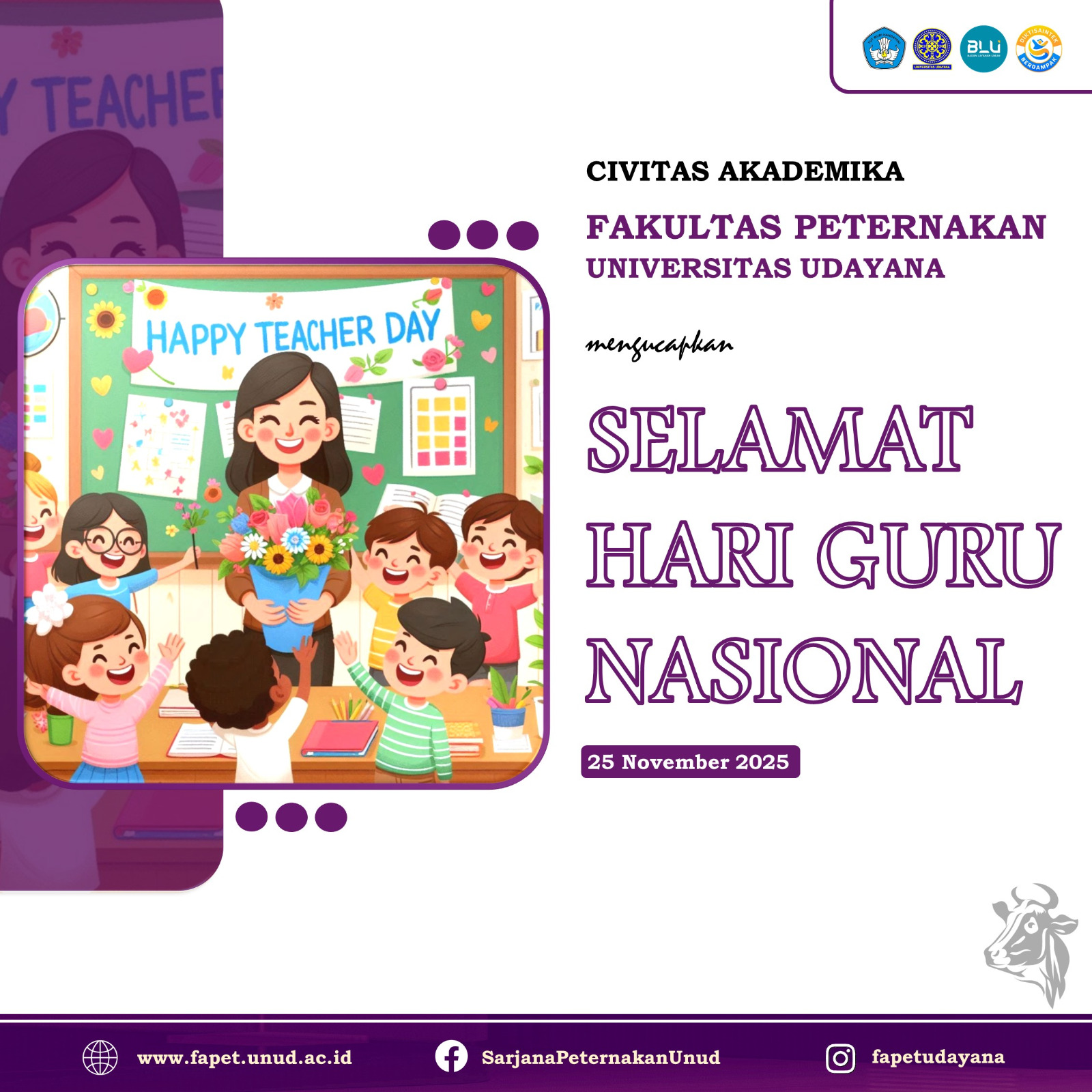 Civitas Akademika Fakultas Peternakan Universitas Udayana mengucapkan:Selamat Hari Guru Nasional Read More...
